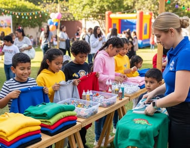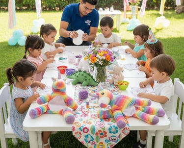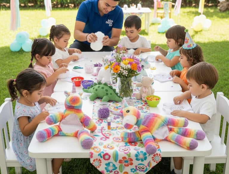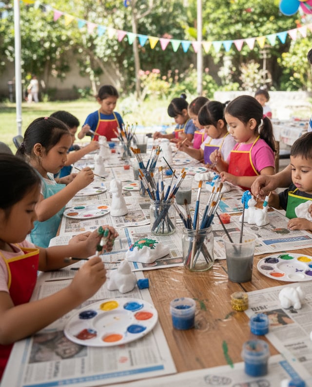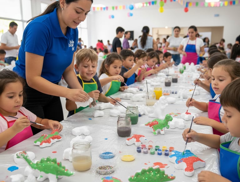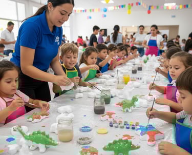 •Staff guiando a los niños en la actividad de adopción y decoración